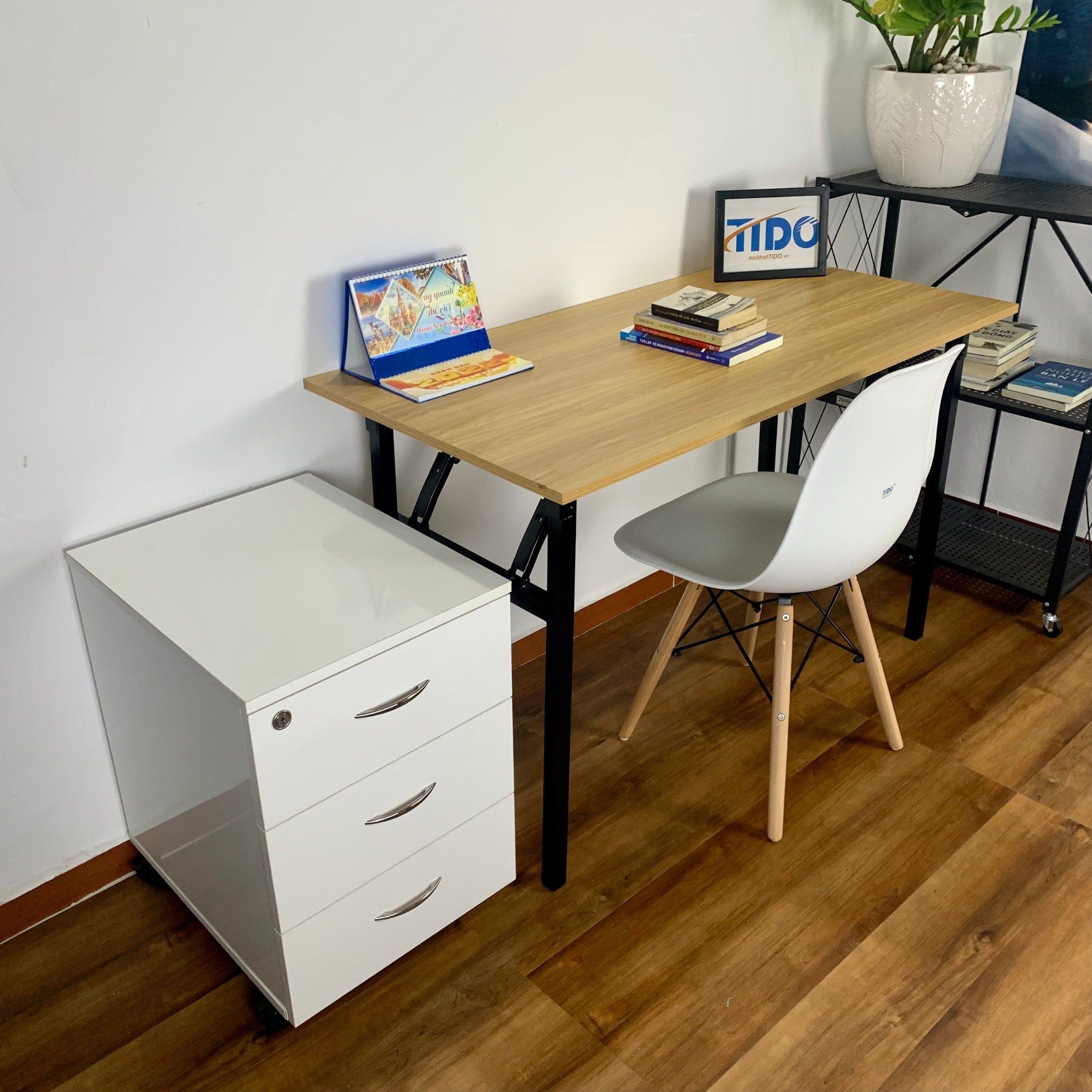 Với kiểu chân sắt chân chữ U vuông sắt nét và hiện đại.Thiết kế dễ dàng gập gọn cho bạn có thể dễ dàng di chuyển.Đây đang là kiểu bàn làm việc văn phòng được bán chạy nhất tại Nội thất TIDO