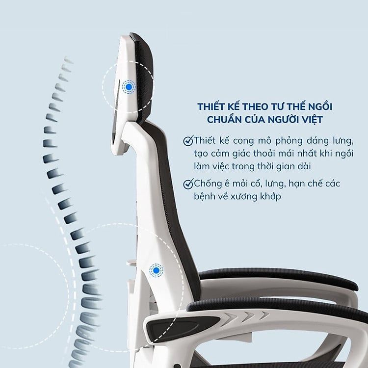 - Thiết kế đường nét tinh tế theo đúng tư thế ngồi, tạo cảm giác thoải mái nhất khi ngồi làm việc