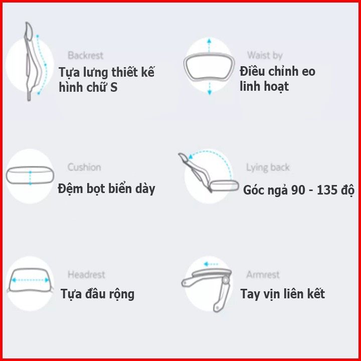 - Dễ dàng thay đổi chiều cao ghế, ngả lưng